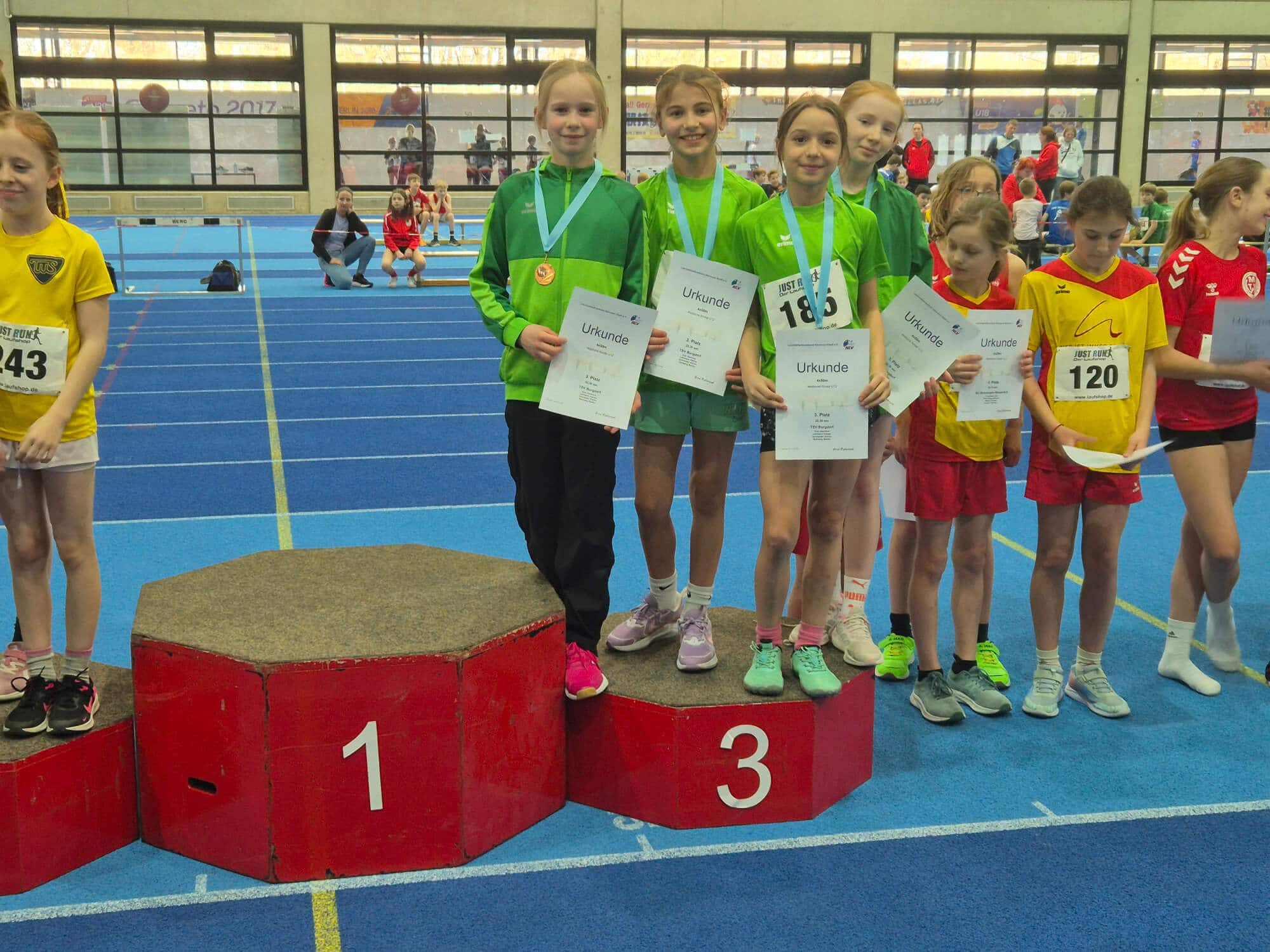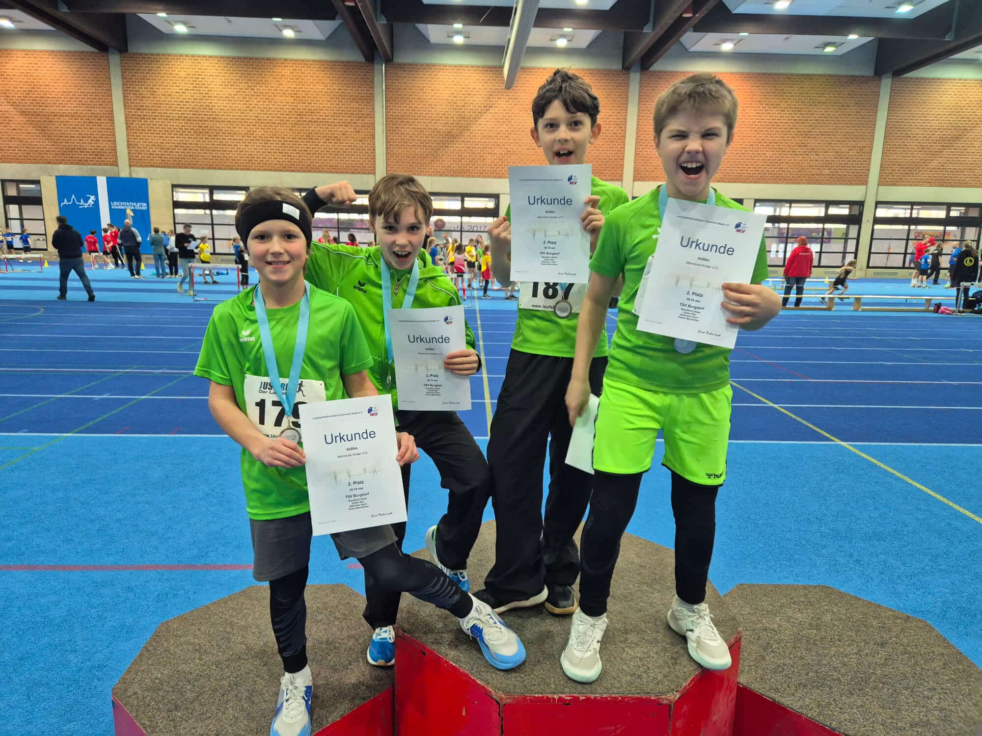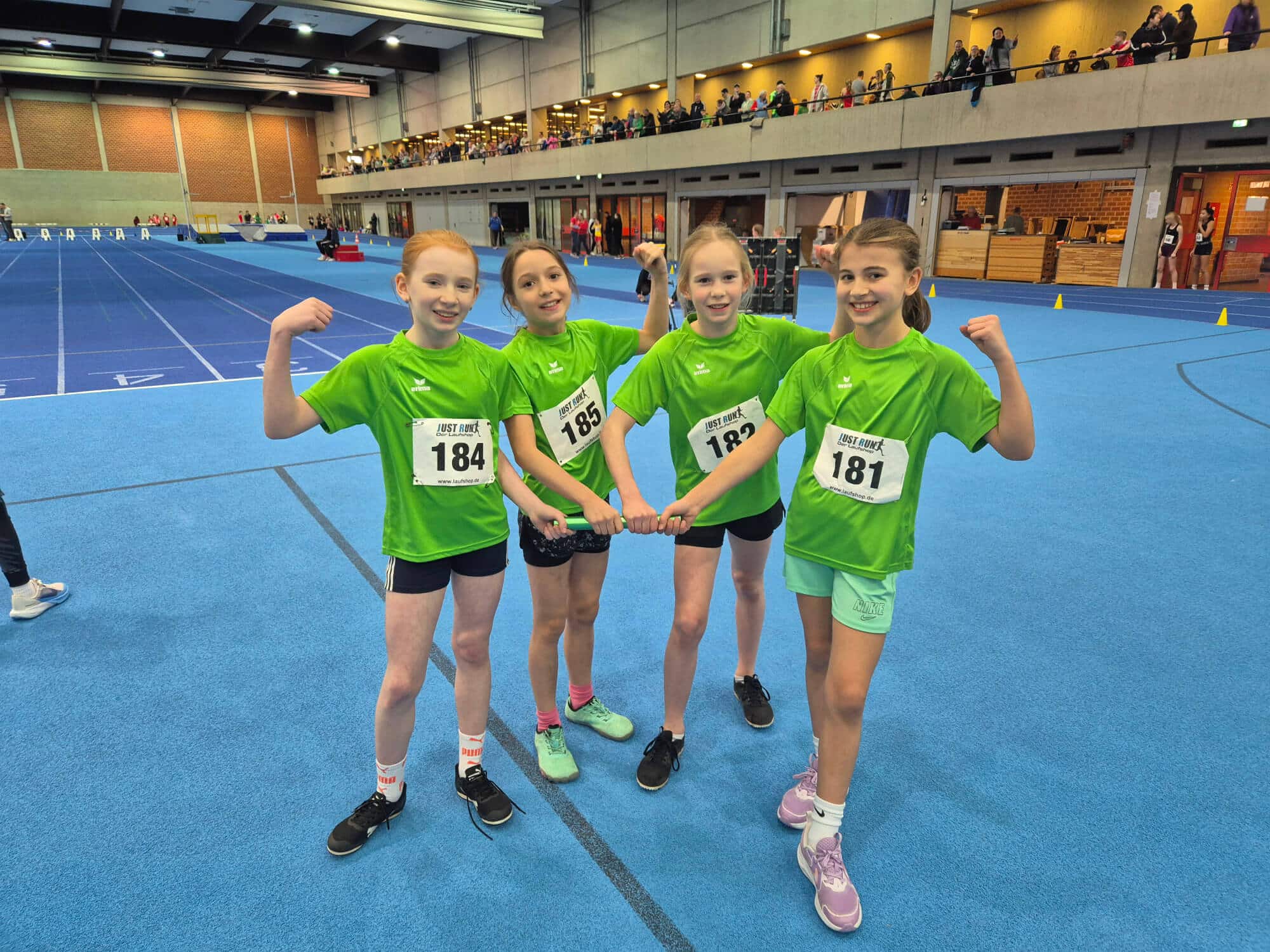 Am Sonntag, den 01.03.26 fuhren wir mit 12 Athleten unseres U12 Nachwuchses zu einem sehr stark besetzten Wettkampf ins SLZ Hannover. Es gab leuchtende Augen und strahlende Gesichter bei unseren Sportlern, als sie die hellblaue Tartanbahn und die professionellen Anlagen sahen. Besonderen Eindruck hinterließ die Steilkurve, als diese für die Staffelläufe hochgefahren wurde.