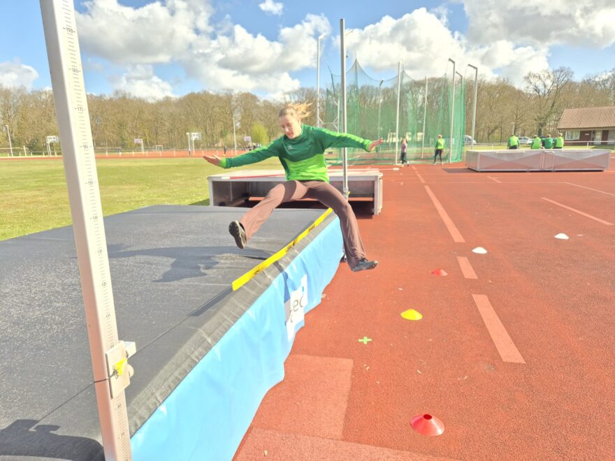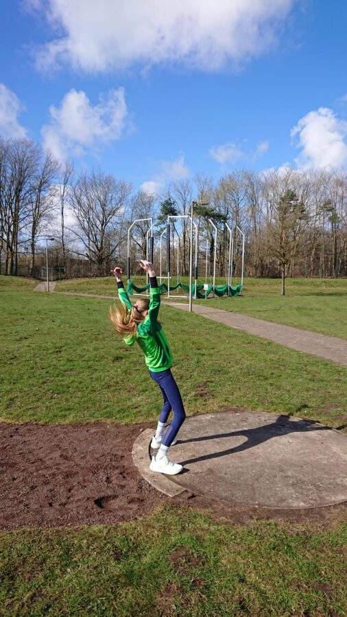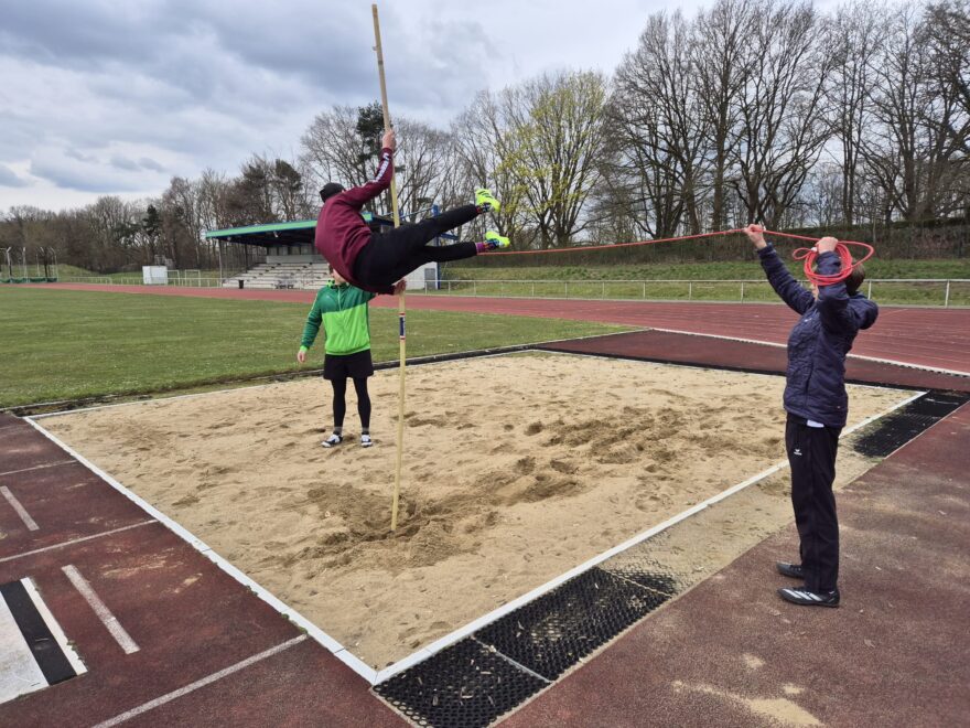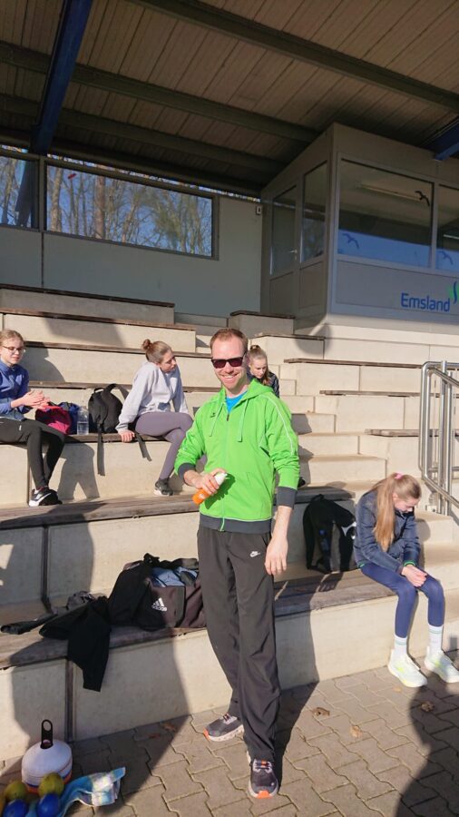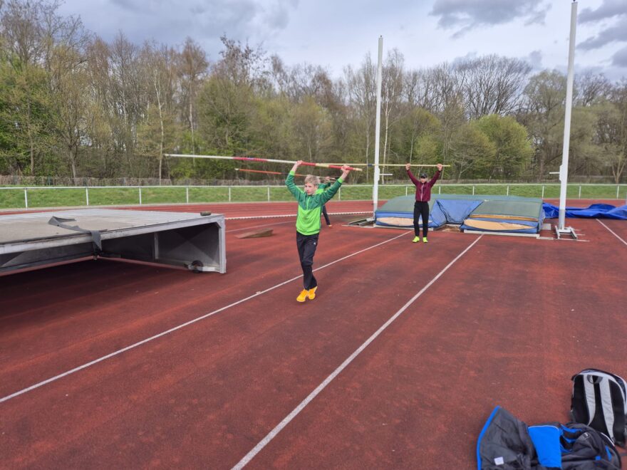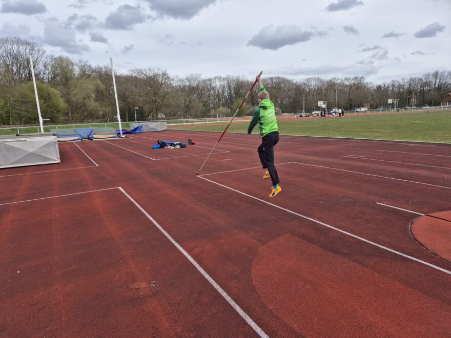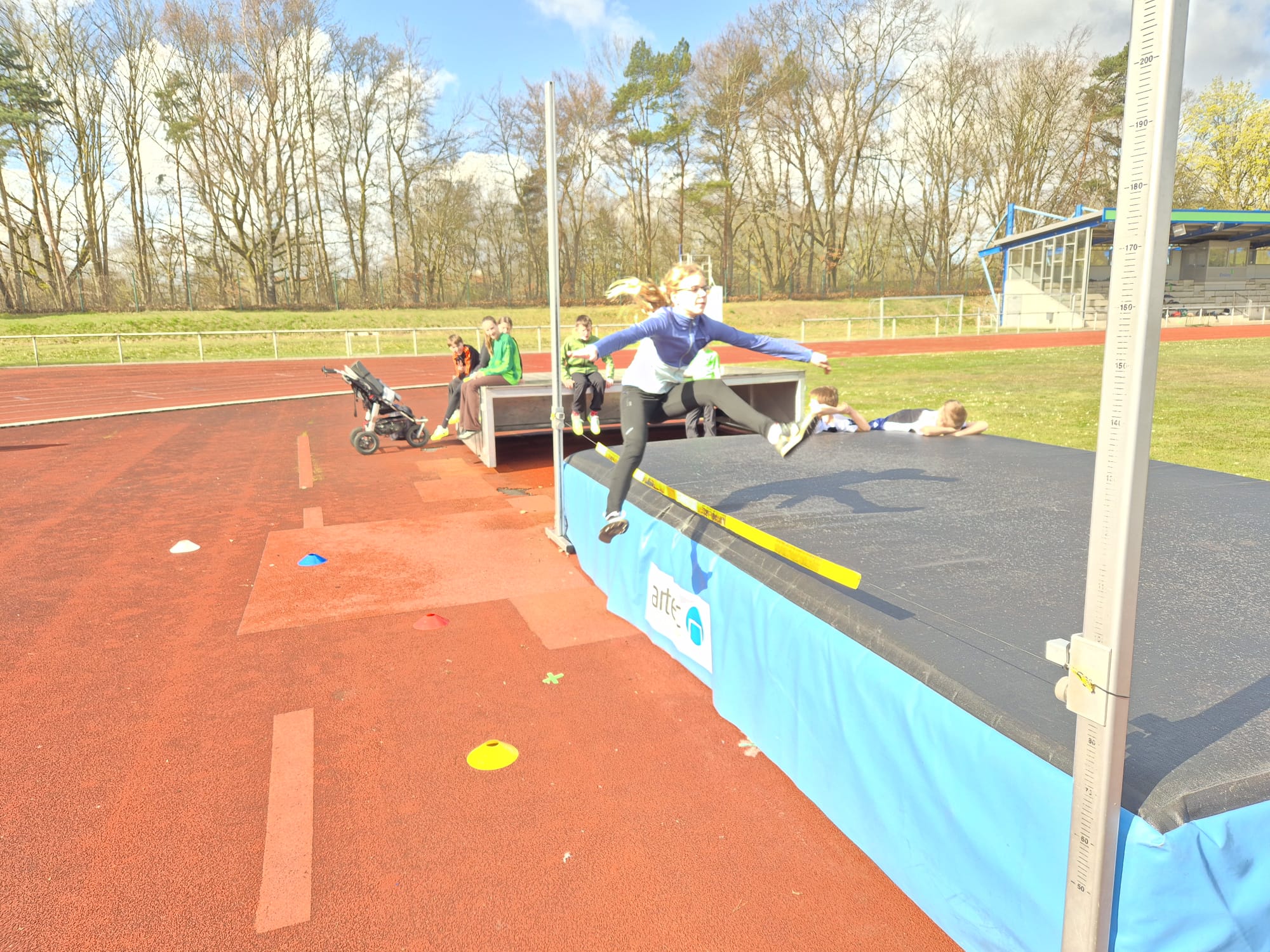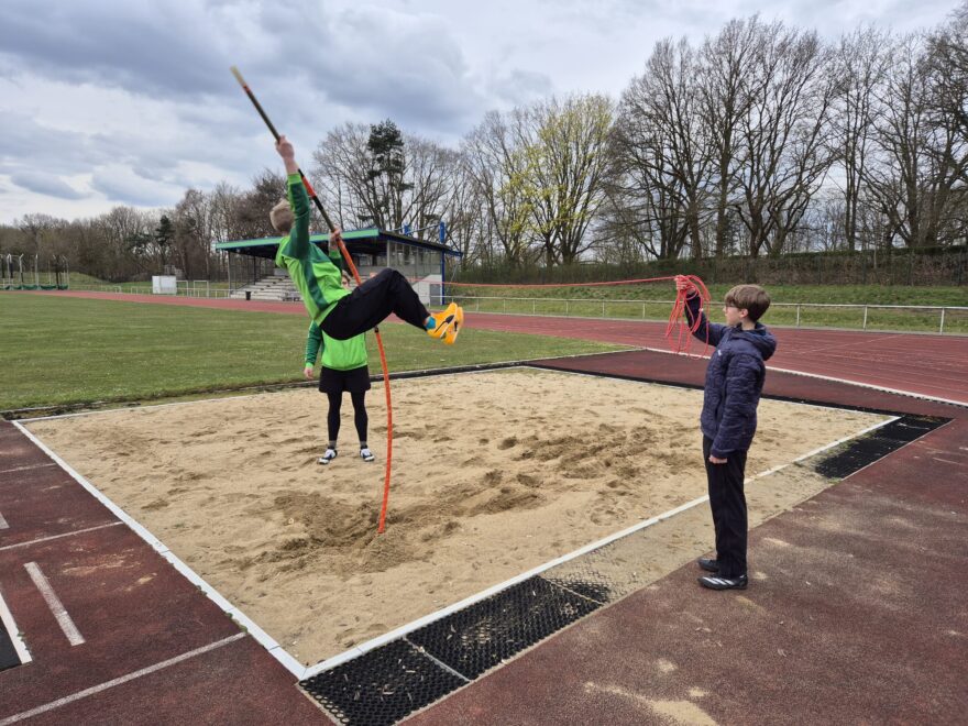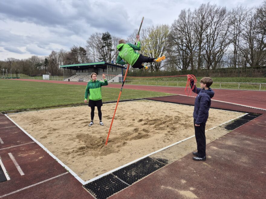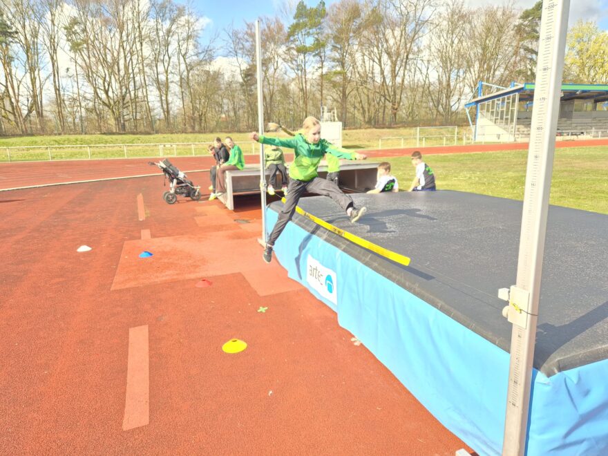 Im Anschluss gingen wir auf den Platz und starteten mit dem Einlaufen und einer Runde Fußball. Darauf folgten drei Abläufe mit jeweils 50 Metern und Hürden Koordination. Nach einer kurzen Pause teilte sich die Gruppe in vier kleinere Trainingsgruppen, um intensiver trainieren zu können. Die eine Gruppe trainierte Diskus, die andere Kugel und die restlichen zwei Hochsprung. Die erste Trainingseinheit endete mit einer Runde Stabi. Anschließend ging es zu einem wohlverdienten Mittagessen, wonach es Ausruhen und Kräftesammeln hieß, um am Nachmittag mit dem Geländelauf weiterzumachen. Am Nachmittag hatte sich die Gruppe erneut geteilt, in Athletik, Stabhoch (für den Mehrkampfkader) und Wurf (Kugel und Speer). Der Tag endete mit einem leckeren Abendbrot und vielen lustigen Spielen.