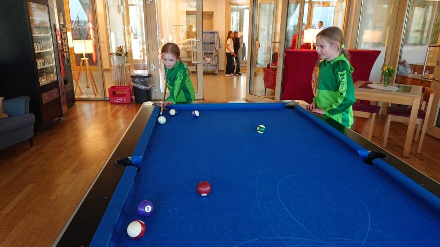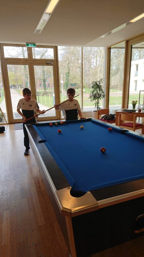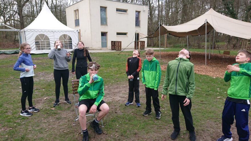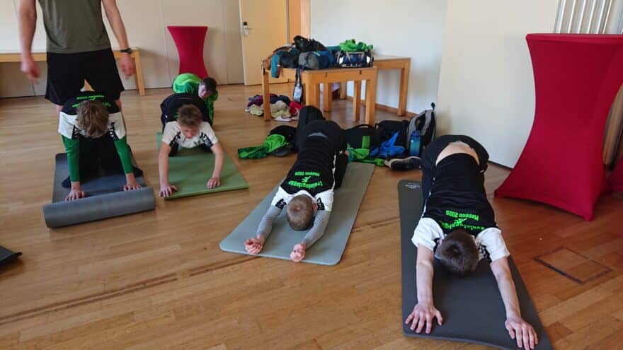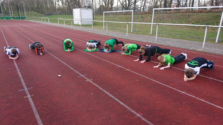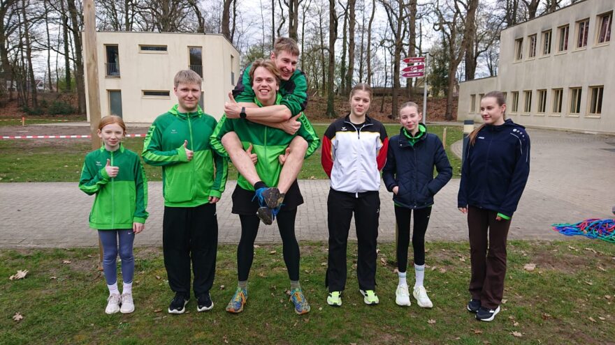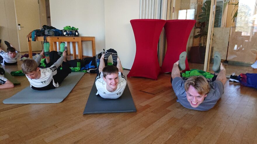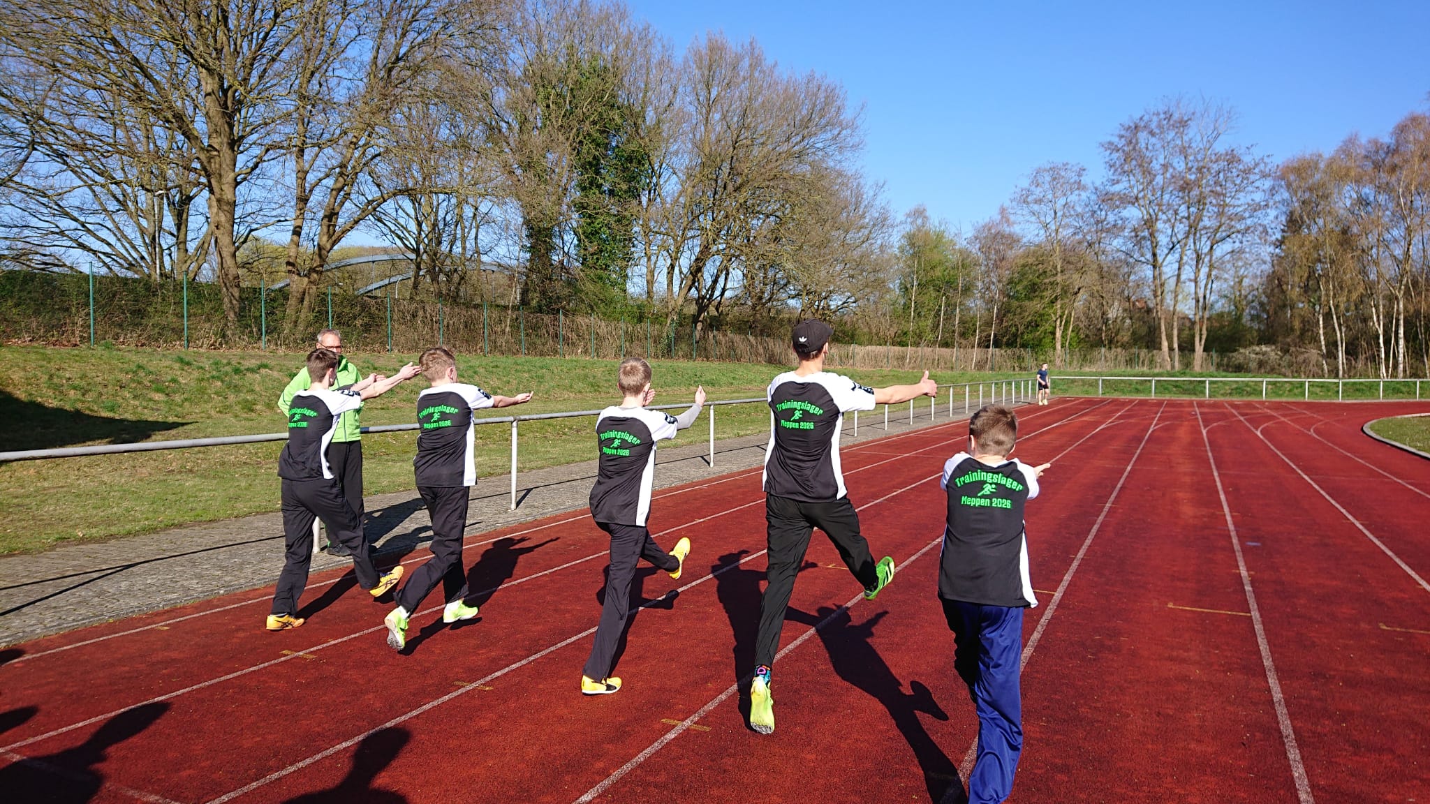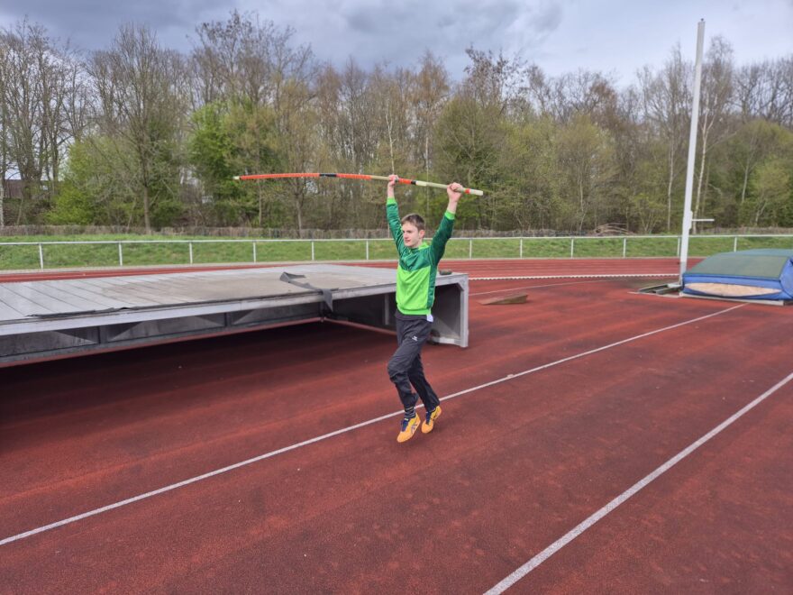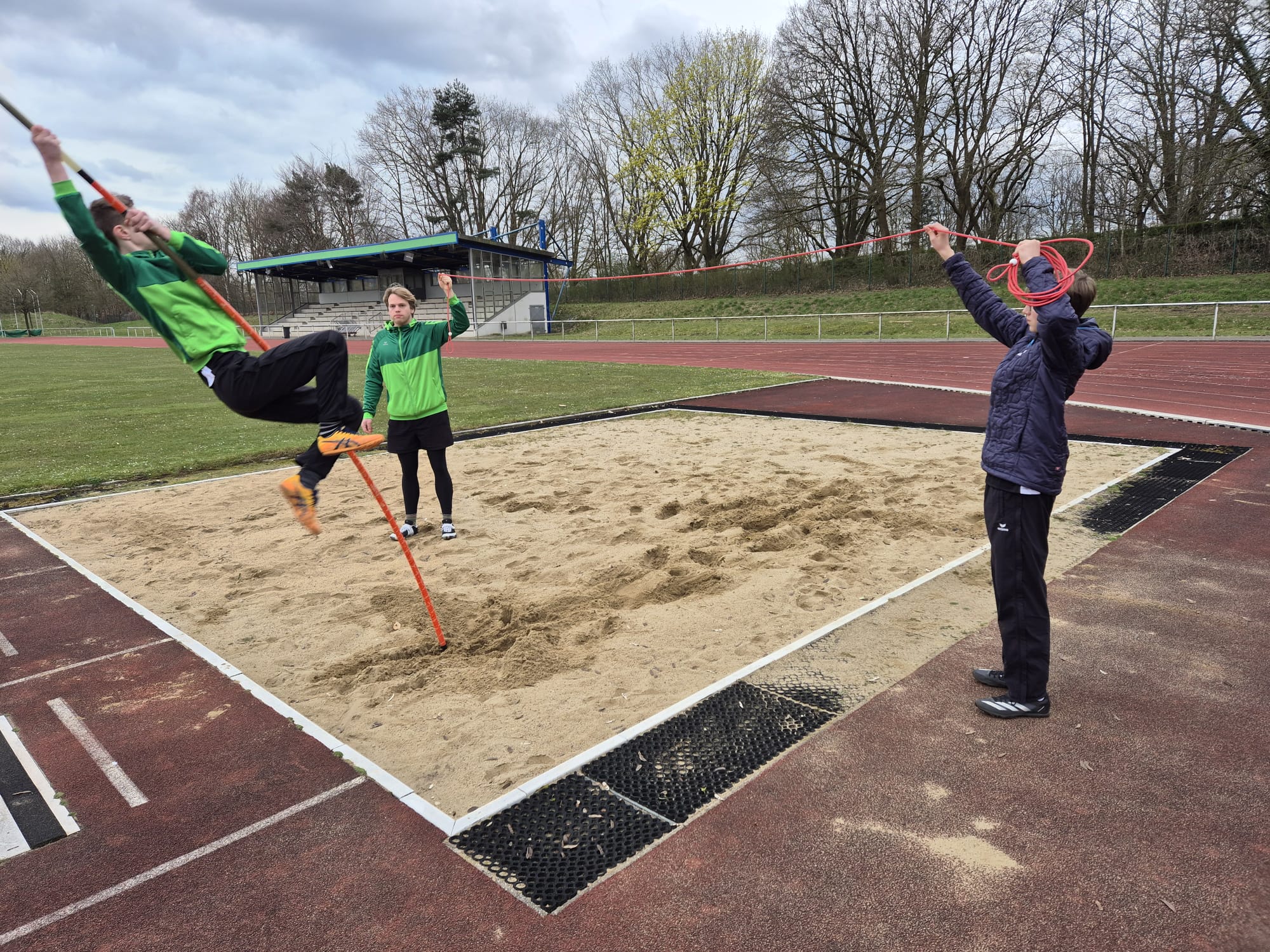 Im Anschluss gingen wir auf den Platz und starteten mit dem Einlaufen und einer Runde Fußball. Darauf folgten drei Abläufe mit jeweils 50 Metern und Hürden Koordination. Nach einer kurzen Pause teilte sich die Gruppe in vier kleinere Trainingsgruppen, um intensiver trainieren zu können. Die eine Gruppe trainierte Diskus, die andere Kugel und die restlichen zwei Hochsprung. Die erste Trainingseinheit endete mit einer Runde Stabi. Anschließend ging es zu einem wohlverdienten Mittagessen, wonach es Ausruhen und Kräftesammeln hieß, um am Nachmittag mit dem Geländelauf weiterzumachen. Am Nachmittag hatte sich die Gruppe erneut geteilt, in Athletik, Stabhoch (für den Mehrkampfkader) und Wurf (Kugel und Speer). Der Tag endete mit einem leckeren Abendbrot und vielen lustigen Spielen.