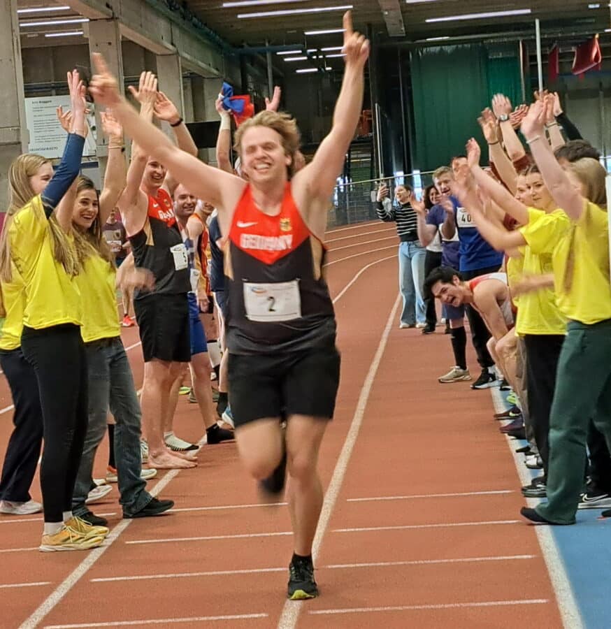 Die 60m waren ein sehr guter Start in das Wettkampfwochenende. Susanne freute sich nach eisigem Wintertraining über gute 9.93s. Marvin blieb souverän unter 8s (7,99) und konnte sich darüber freuen, bei 800m überrundet zu werden; er sammelte dadurch Energie für einen Weltrekord innerhalb dieses Ultra-Mehrkampfs: 13,00m mit der Kugel kamen zwar nicht an das Einstoßen heran, sind aber dennoch top! Beim abschließenden 3000m-Lauf merkte Christian seinen Trainingsfortschritt und freute sich sehr über 12:03, fast so sehr wie über das knappe Erreichen der Sprunggrube im Horizontalsprung. Susanne fand gut in das neue Format ein, fand bei den Läufen eine gute Mischung zwischen vollem
