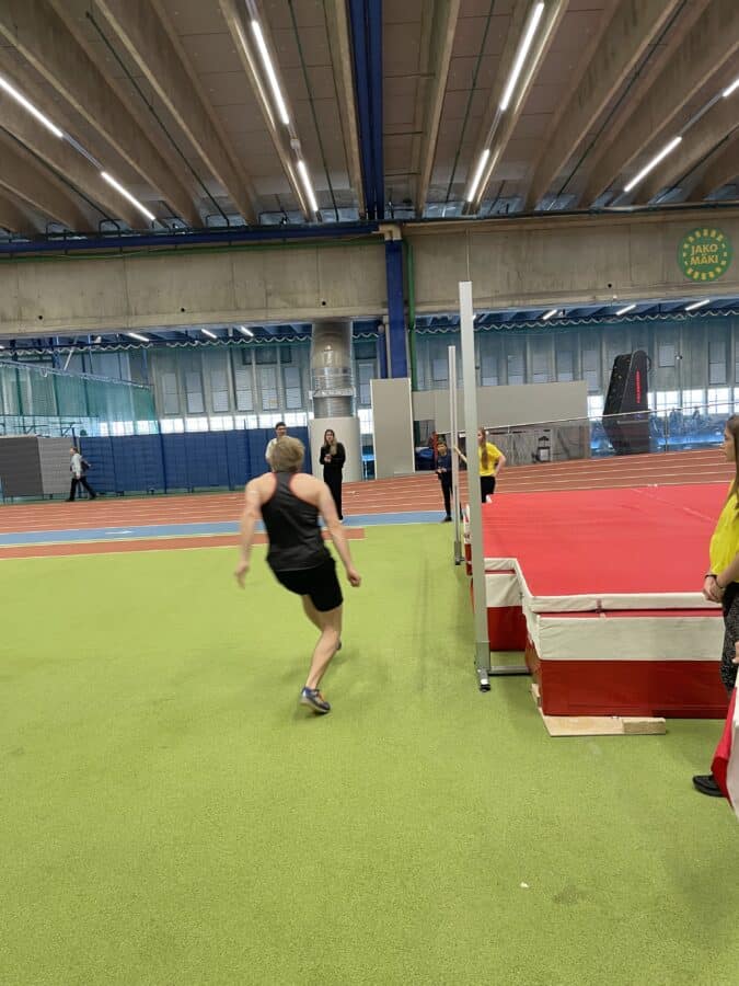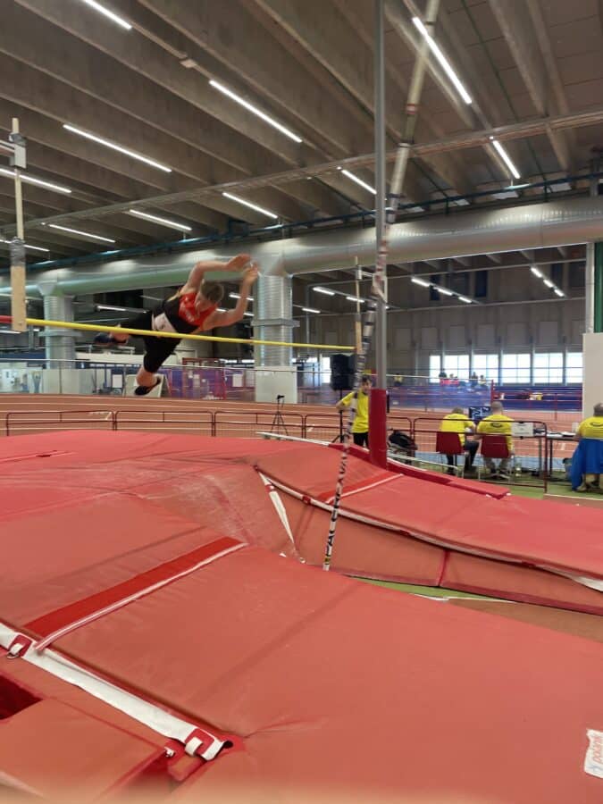 Der Gewichtswurf fand draußen statt, wo wir schon 2019 den Hammer schwungen. Nach Abfahrt um 7:00 morgens mussten Kräfte gesammelt werden. Marvin begeisterte mit 12,08m und damit einem weiteren neuen Weltrekord. 60m Hürden folgten nach 40min Busfahrt zurück zur Halle ebenfalls verletzungsfrei. Beim Stabhochsprung konnte Christian mit sehr guten 2.30m die meisten Punkte holen.